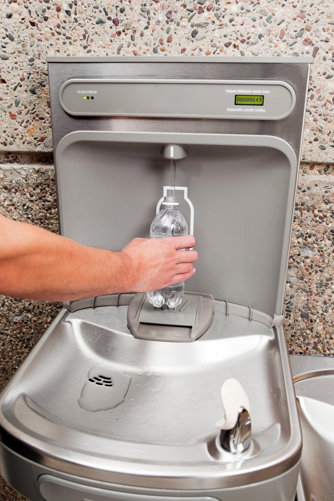 Installer des fontaines à eau des espaces stratégiques, tel qu’un endroit ombragé de la cour, garantit à un accès permanent et pratique à l’eau potable. Ces dispositifs sont pensés pour permettre de remplir rapidement les gourdes, favorisant ainsi l’usage de contenants réutilisables au détriment des bouteilles en plastiques, dans une démarche à la fois écologique et éducative. Certains modèles de fontaines sont équipés de plusieurs robinets afin que plusieurs élèves puissent s’en servirent simultanément, ou encore d’un robinet orienté vers le haut permettant de boire directement sans besoin de contenant.