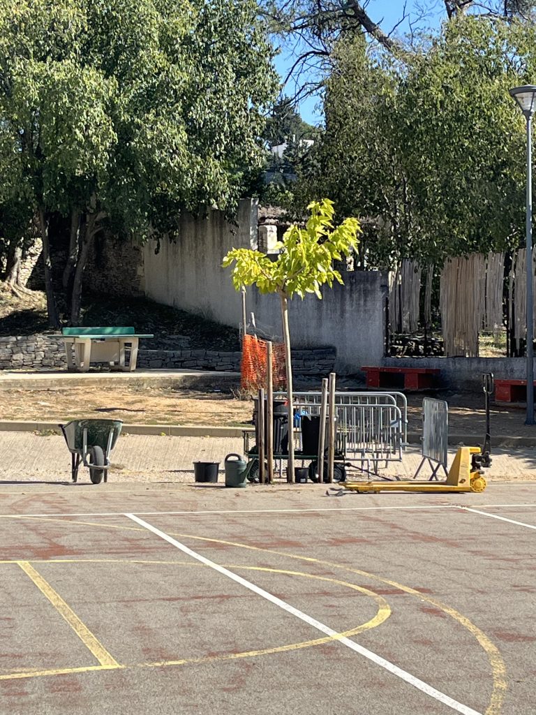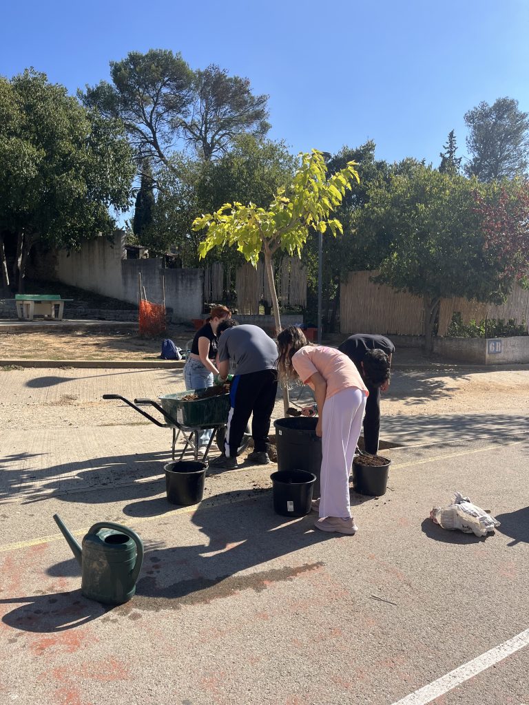 En décembre 2025, au collège Jean Rostand, quatre nouveaux arbres ont été plantés pour dans le but de végétaliser et ombrager petit à petit la cours. La plantation s’est faite en collaboration avec les jeunes de la MFR (Maison Familiale et Rurale) en formation paysagisme et les éco-délégués. Une troisième session de végétalisation de la cour aura lieu en mars 2026 grâce aux végétaux récupéré gratuitement auprès du Conseil départemental.